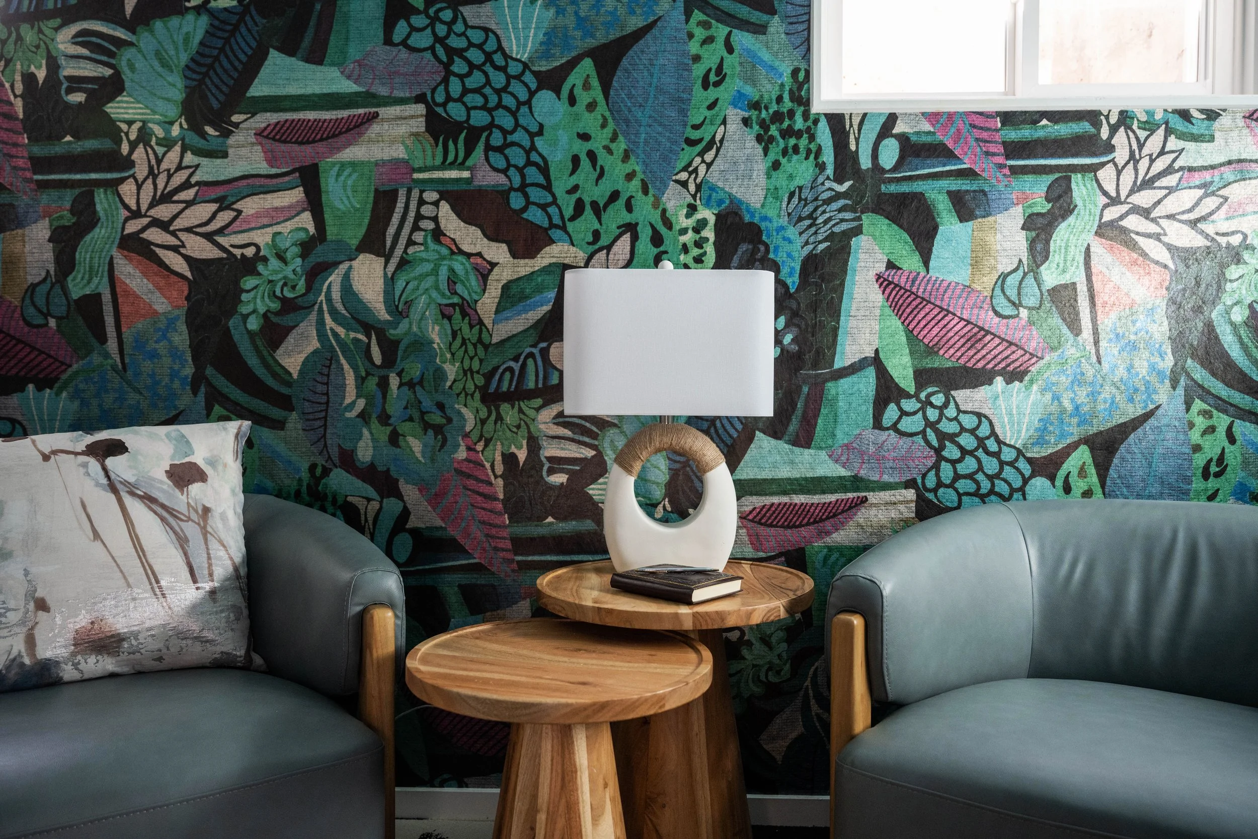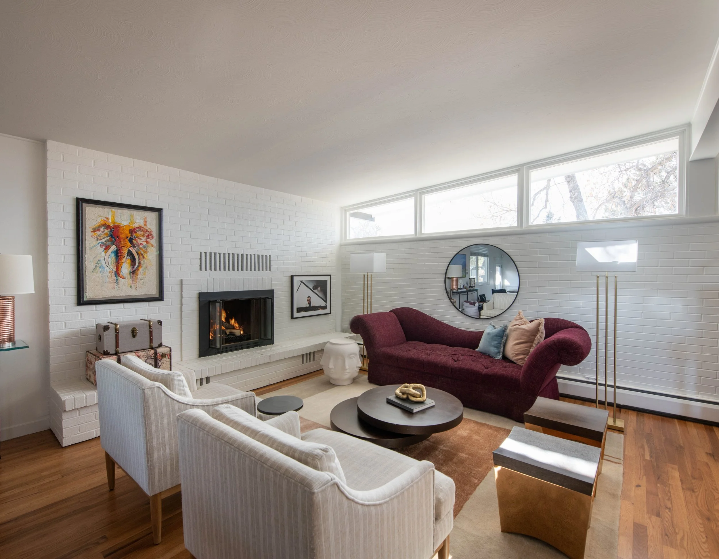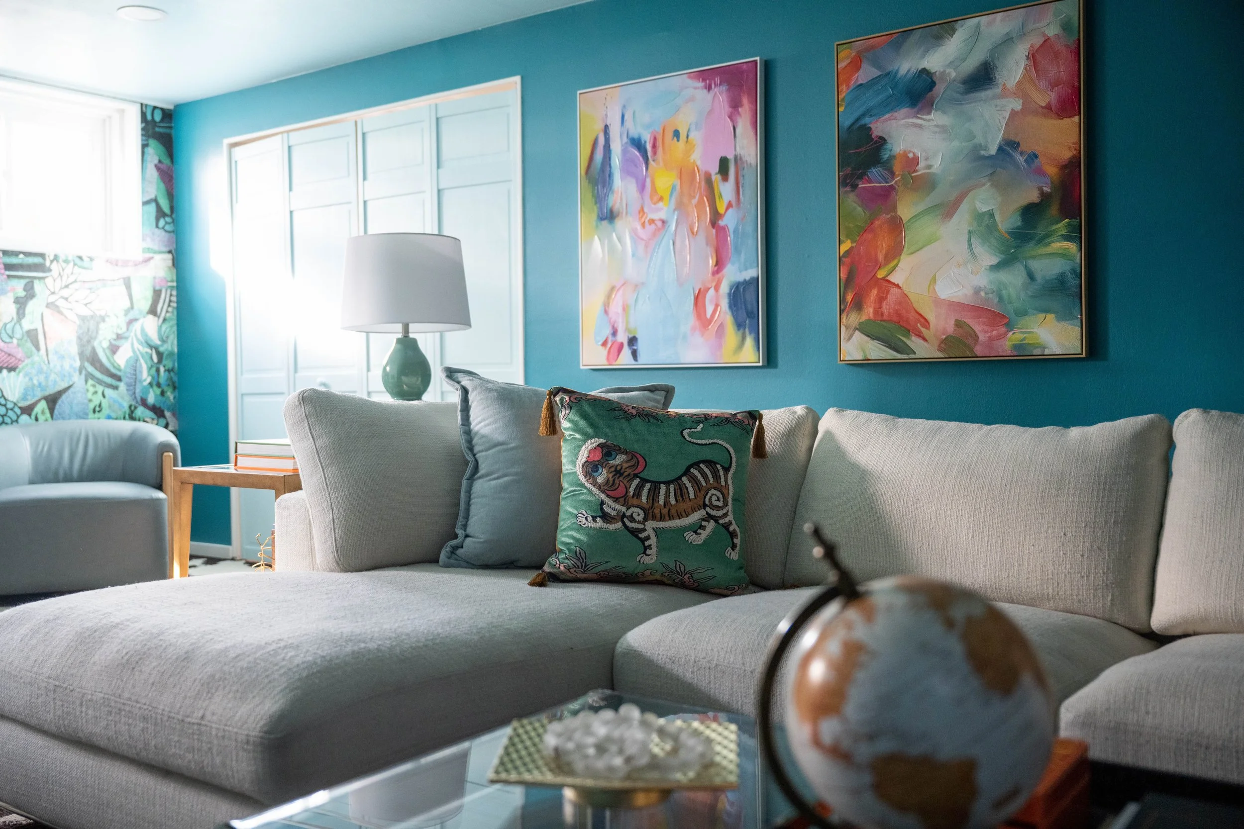 Balancing sleek lines with artistic edge and inviting comfort, this mid-century modern home blends iconic design elements with a warm, cozy, and colorful atmosphere, fit for a growing family.