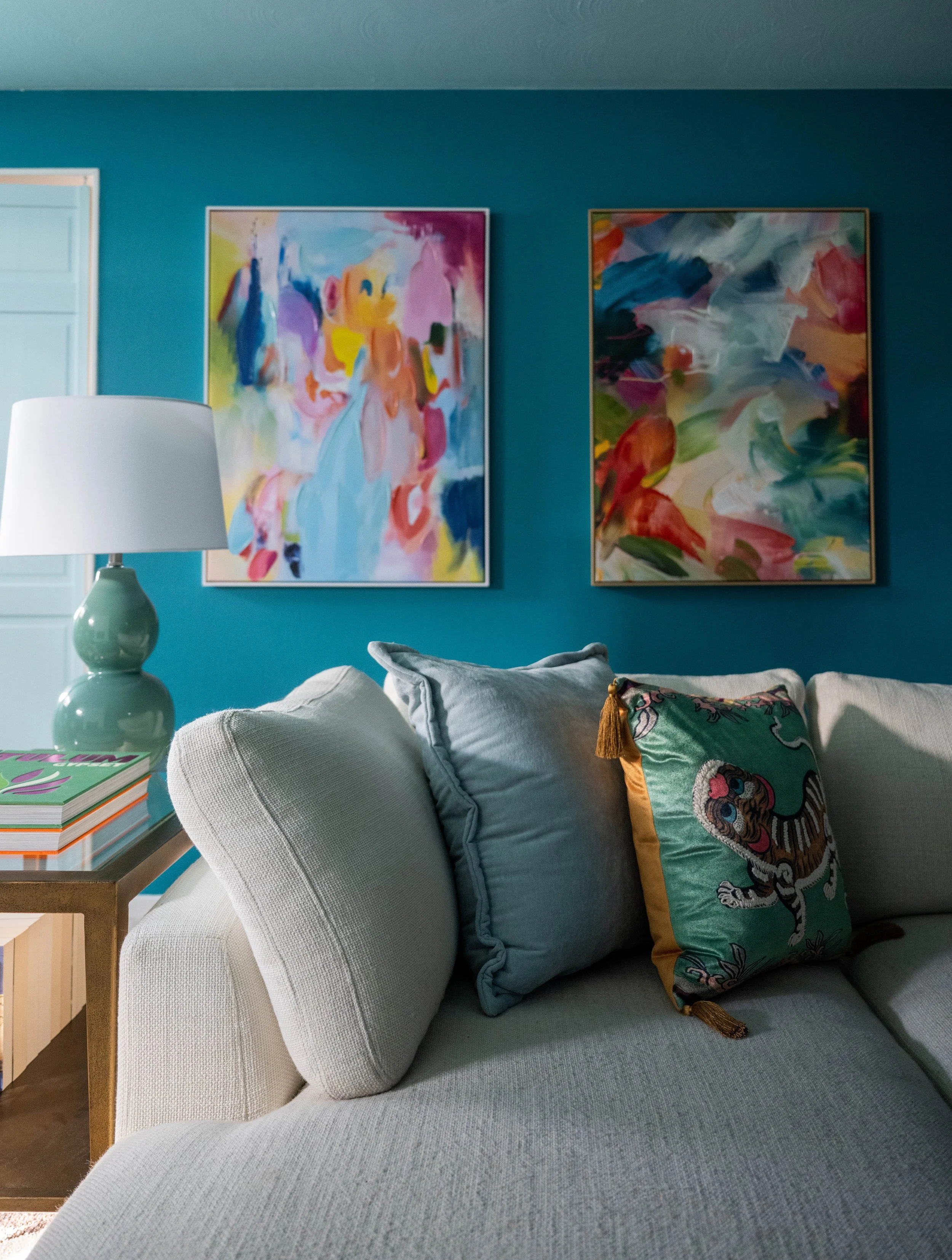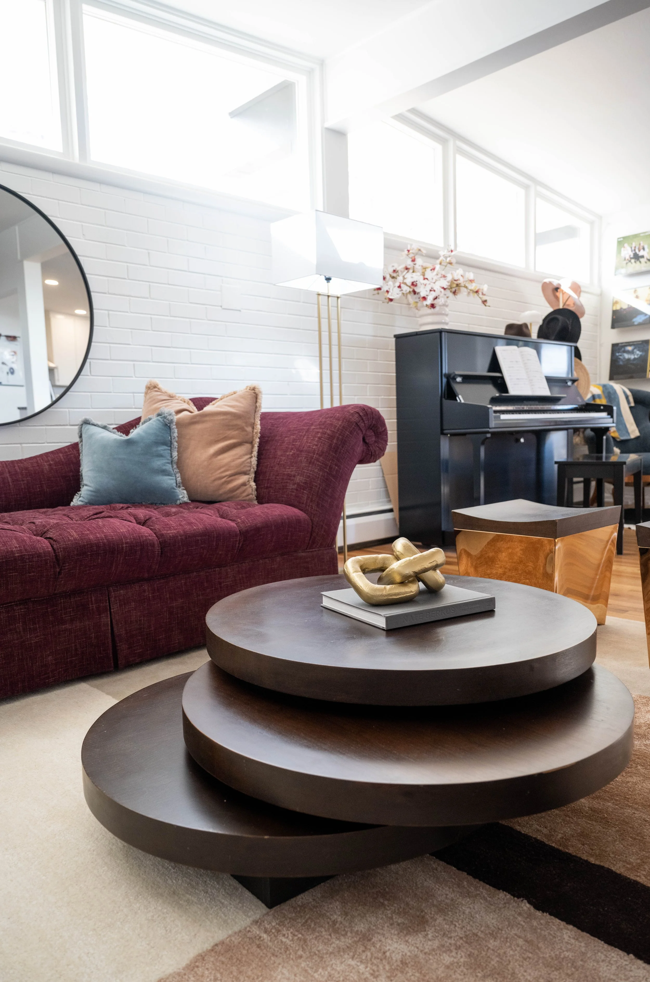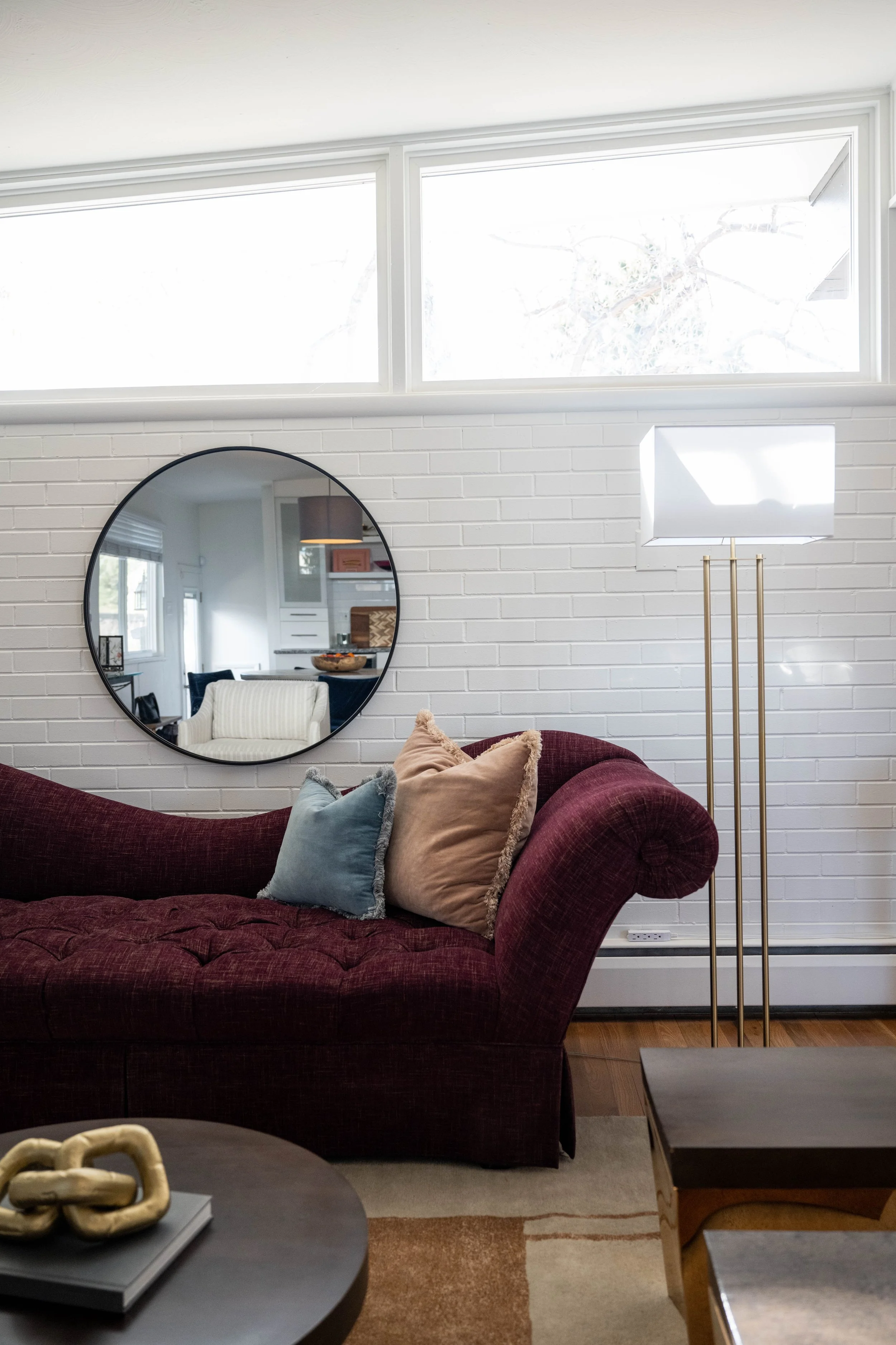 Balancing sleek lines with artistic edge and inviting comfort, this mid-century modern home blends iconic design elements with a warm, cozy, and colorful atmosphere, fit for a growing family.